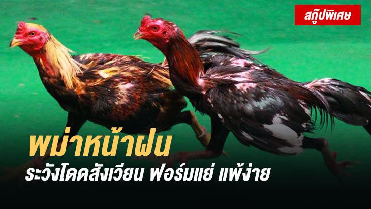ไก่ชนพม่าแม้จะคม เก่ง แต่เรื่องจิตใจหากเป็นพม่า 100 แท้ๆ ใจมักเสาะ เลี้ยงพม่าช่วงนี้ถือว่าเหนื่อยไม่ใช่เล่นคับเพราะเข้าช่วงหน้าฝนทีไร ไก่พม่ามักฟอร์มไม่ค่อยดี แรงหมดง่ายๆ การสั่งเกตุไก่พม่าช่วงหน้าฝนจึงต้องดูน้ำขนครับว่ามันวาวหรือขนแห้ง หากขนไก่แห้งแสดงว่าขาดความสมบูรณ์ และในช่วงนี้ไก่พม่ามักจะเป็นช่วงผลัดขน จึงไม่ค่อยสู้ไก่เต็มร้อย ไก่พม่าเลือดสูงๆ บางตัวผลัดขนใหม่กลัวแม้กะทั้งไก่ตัวเมีย ด้วยซ้ำใครที่เลี้ยงพม่าเลือดสูงออกชนในช่วงนี้ จึงควรสังเกต อย่างสม่ำเสมอไม่เช่นนั้นเดี๋ยวจะหาว่าไม่มีคนบอกนะจ๊ะ โชคดีมีไก่เก่งออกชนกันทุกคนครับ
