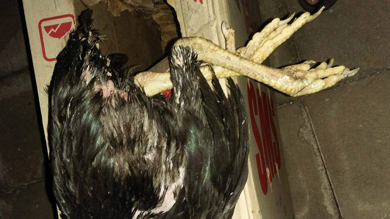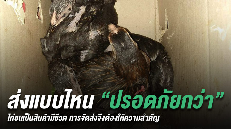 สาเหตุหลักของการเสียชีวิตไก่ชนในการขนส่งคือ การขาดอากาศหายใจ หลายคนมักขาดความรอบคอบในขั้นตอนนี้ คือใช้กล่อง Recycle หรือนำกล่องเก่าที่ไม่ได้ใช้ นำมาประยุกต์ใช้ แล้วเปิดช่องอากาศไม่เหมาะสม ไก่ชนที่อยู่ในกล่องจึงมักช๊อคตอนจัดส่ง หรือหนักสุดก็คือเสียชีวิต การแก้ไขที่ถูกต้องจึงควรใช้กล่องที่มีมาตรฐาน หรือหากใช้กล่องที่นำมาประยุกต์เองควรเปิดช่องรับอากาศให้กว้าง กว้างพอขนาดที่ไก่ชนสามารถที่จะยื่นหัวหลือจมูกออกไปได้ หลายคนใช้วิธีเอามีดปลายแหลมแทง เจาะเป็นสามเหลี่ยมแบบนี้ไม่เหมาะนะครับ อากาศในกล่องจะน้อย ซึ่งหากการขนส่งเดินทางไกลๆ โอกาสไก่ชนตายก็เกิดขึ้นสูง