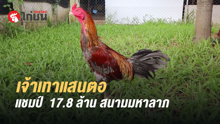 4. “เจ้าเทาแสนตอ” แชมป์ 17.8 ล้าน สนามมหาลาภ วันที่ 1 ม.ค. 2560 "เจ้าเทาแสนตอ" ไก่เก่งจากจังหวัดเพชรบุรี ถูกนำมาเลี้ยงออกชนโดยทีมงานซามูไร เจอกับ เจ้าฟาโร ซุ้มปฏิมากรฟาร์ม แชมป์เงินล้าน2 สมัย สนามมหาลาภ และสามาถคว้าชัยชนะ รับเงินรางวัล 17.8 ล้านบาท เจ้าเทาแสนตอ สถิติ 3 ไฟท์ พิกัด 3.0 กิโลกรัม ไฟท์ที่ 1 ชนะอัน 3 ไฟท์ที่ 2 ชนะอันกะหน่อย ไฟท์ที่ 3 สนามมหาลาภ ปัจจุบันถูกขายไปในราคา 1,500,000 บาท สังกัด สุรัสสาฟาร์ม โคราช