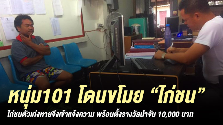 โดยเจ้าของไก่ชน ให้ข้อมูลว่าตนได้เลี้ยงไก่ชนเอาไว้หลายตัว ก่อนหน้านี้ก็เคยมีไก่ชนที่เลี้ยงไว้ได้หายไป จากตนจึงได้นำกล้องวงจรปิดมาติดเอาไว้ ล่าสุดไก่ชนที่หายไปจำนวน 2 ตัว หนึ่งในนั้นเป็นไก่เก่งของตน ชื่อเจ้าหมัดเหล็ก รอยชน 2.9-3.0 อายุ 10 เดือน (ปีใหม่+แจ้+เนตรนภา) ปล้ำมาสามครังไม่เคยเต็มอัน ซึ่งคาดว่าคนร้ายอาจจะเคยเห็นและชื่นชอบ และได้ติดตามาขโมยไป ตนจึงให้เจ้าหน้าที่นำเทปจากกล้องไปตรวจสอบเพื่อติดตามคนร้ายมาดำเนินคดีต่อไป พร้อมกันนี้ตนได้ตั้งรางวัล 10,000 บาท สำหรับผู้ที่แจ้งเบาะแสคนร้ายแก่เจ้าหน้าที่และสามารถติดตามไก่ชนกลับมาได้