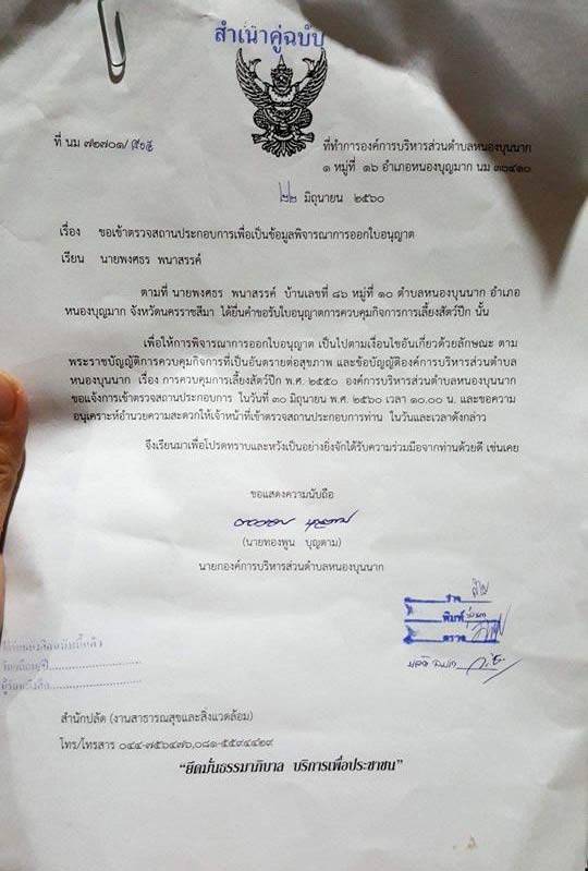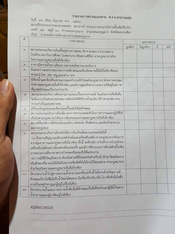 หลังจากเจ้าของฟาร์มไก่ชนแห่งหนึ่งในจังหวัดนครราชสีมา ใช้ชื่อเฟสบุ๊คว่า พงศธรฟาร์ม หนองบุญมาก โพสขอความคิดเห็นจากกลุ่มคนรักไก่ชน ว่าเมื่อวานสาธารณสุขมาตรวจฟาร์มผมจะให้ผมทำให้ได้หรือใกล้เคียงกับฟาร์มไก่เนื้อซึ่งผมทำไม่ได้หรอกครับผมเลี้ยงไก่ชนให้ผมขออนุญาติต่างๆลึกลับซับซ้อนจริงๆเอาแบบบัญญัติของไก่เนื้อมาใช้ต้องมีห้องปลอดเชื้อแบบนั้นแบบนี้ขอถามหน่อยครับว่าเพื่อนๆเคยเจอแบบผมไม ถ้าไม่ทำหรือมีปัญหาจะให้ปศุสัตว์มายึดไก่ผมว่างั่น ขอความคิดเห็นหน่อยครับ บอกว่าถ้าเลี้ยงไก่เกิน30ตัวจะต้องขออนุญาติ