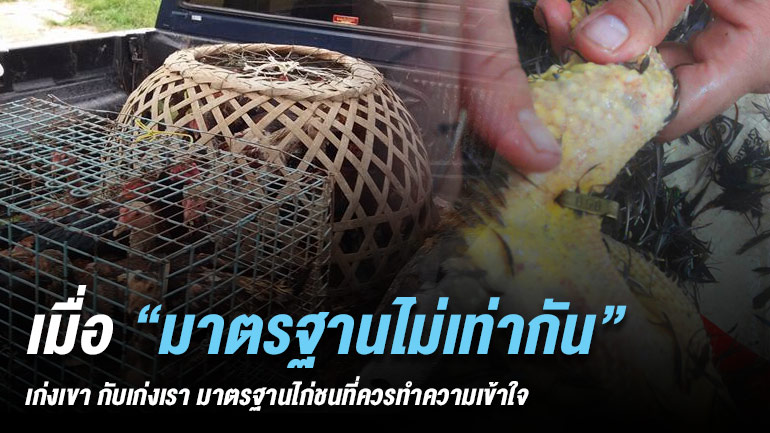 มาตรฐานความเก่ง ใช้อะไรเป็นเกณฑ์ ? มาตรฐานความเก่ง ก็ต้องเป็นไก่ชนเก่ง ซึ่งนิยามความเก่งของไก่ชนมันกว้างมาก เพราะมันต่างจากสินค้าที่วางขายในเซเว่น ที่มีกระบวนการมีสูตรเฉพาะในการผลิต ผ่านกระบวนการ ชั่ง วัด ตวง แต่ไก่ชนจะใช้สูตรเดียวกันไม่ได้ เพราะไก่ชนมีชีวิต ฉะนั้นมาตรฐานสายพันธ์จึงเป็นเรื่องที่ทำได้ยาก แม้ว่าไก่ชนจะมีแชมป์มามากมาย ก็ไม่ได้หมายความว่าจะถ่ายทอดความเก่งออกมาในรุ่นลูกได้เท่ากันหมด ฉะนั้นเกณฑ์ความเก่งของไก่ชน ถ้าดูที่ไก่ไม่ได้ก็ต้องดูที่คนเลี้ยงไก่ครับ ว่าน่าเชื้อถือ มีมาตรฐานแค่ไหน