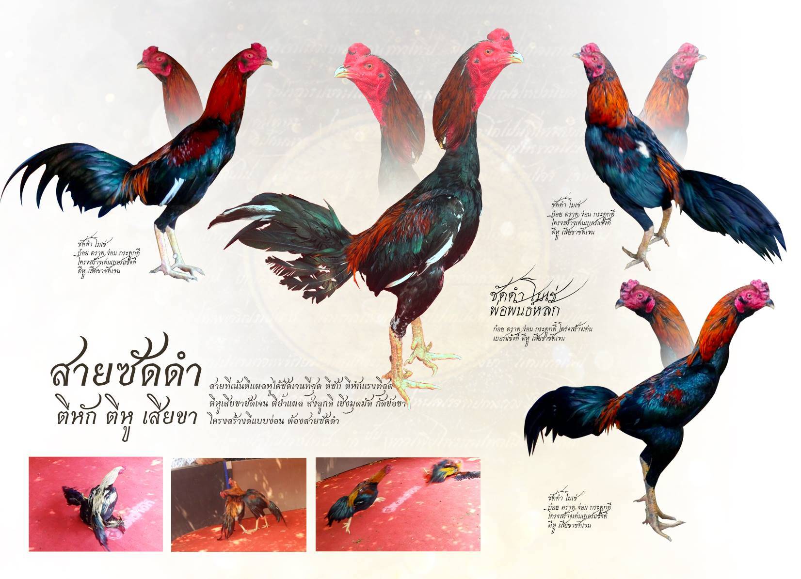 สายซัดดำครับ สำหรับท่านที่ชอบสายเชิง ล็อคคอ ตีข้อต่อหัว สายที่เน้นตีแผลหูได้ชัดเจนที่สุด ตีชัก ตีหักแรงที่สุด ตีหูเสียขาชัดเจน ตีจุดตาย ตีย้ำแผล ส่งลูกดี เชิงมุดมัด กัดข้อขา โครงสร้างดีแบบง่อน น้ำอึดน้ำทนดี สายเลือดง่อนชัดเจน ต้องสายซัดดำครับ หัวใจสำคัญของการพัฒนาไก่ชน ไก่เชิง ไก่พม่าให้มีคุณภาพ นั้นคือต้องมีสายพันธ์ที่มีคุณภาพเท่านั้น จากร้อยเหลือสิบ จากสิบเหลือหนึ่ง ไม่เน้นปริมาณแต่เน้นผลงานที่มีคุณภาพเท่านั้น
